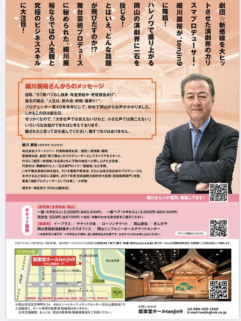 その細川さんのトークショーが岡山で開催されます。