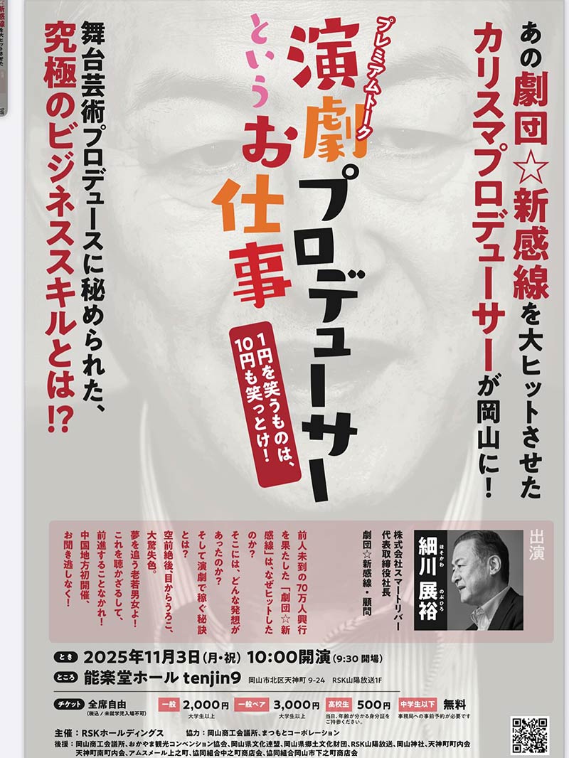 お近くの方はぜひ、芸能界と人生を知り尽くしている細川さんのお話しを聞いてみてください。